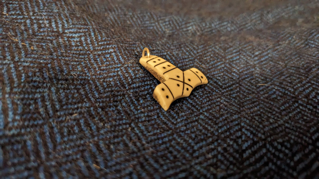 Thor hammer pendant made from antler with some rather fetching lines and dots, with a silver loop