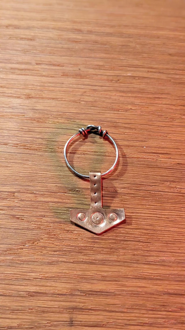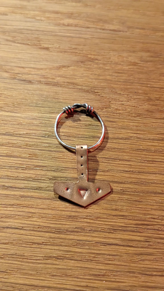 A simple little copper Mjolnir pendant on a silver loop, choice of patterns.