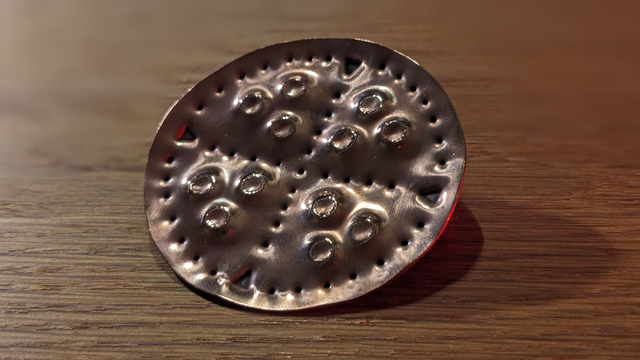 Stamped copper disc brooch