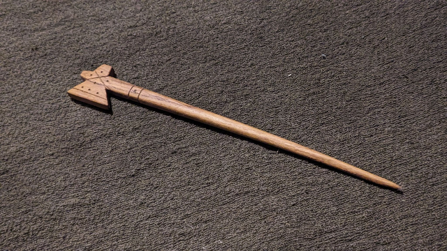 A polished hardwood axe headed pin, extremely Viking looking, with line and dot work. Great as a hairpin. 15cm